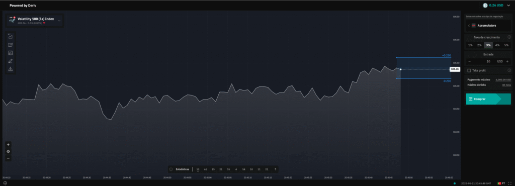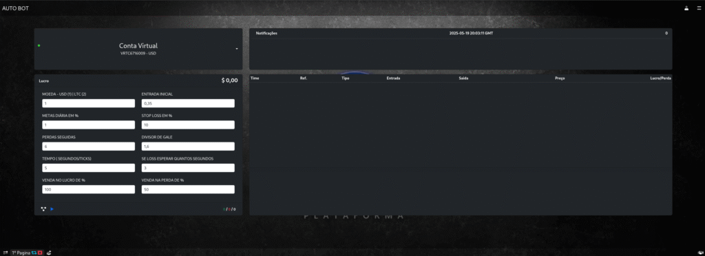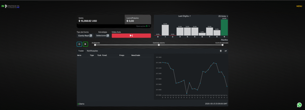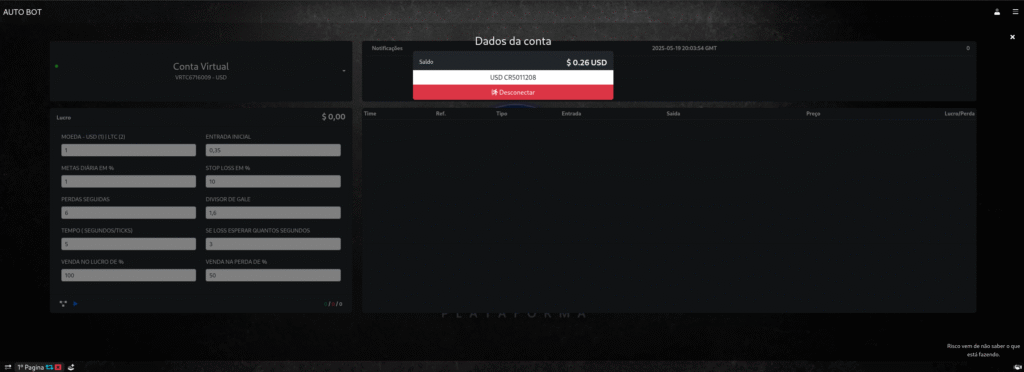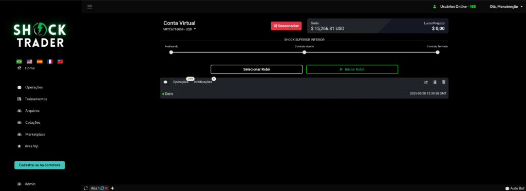 Operações automáticas e manuais conectadas à corretora Deriv